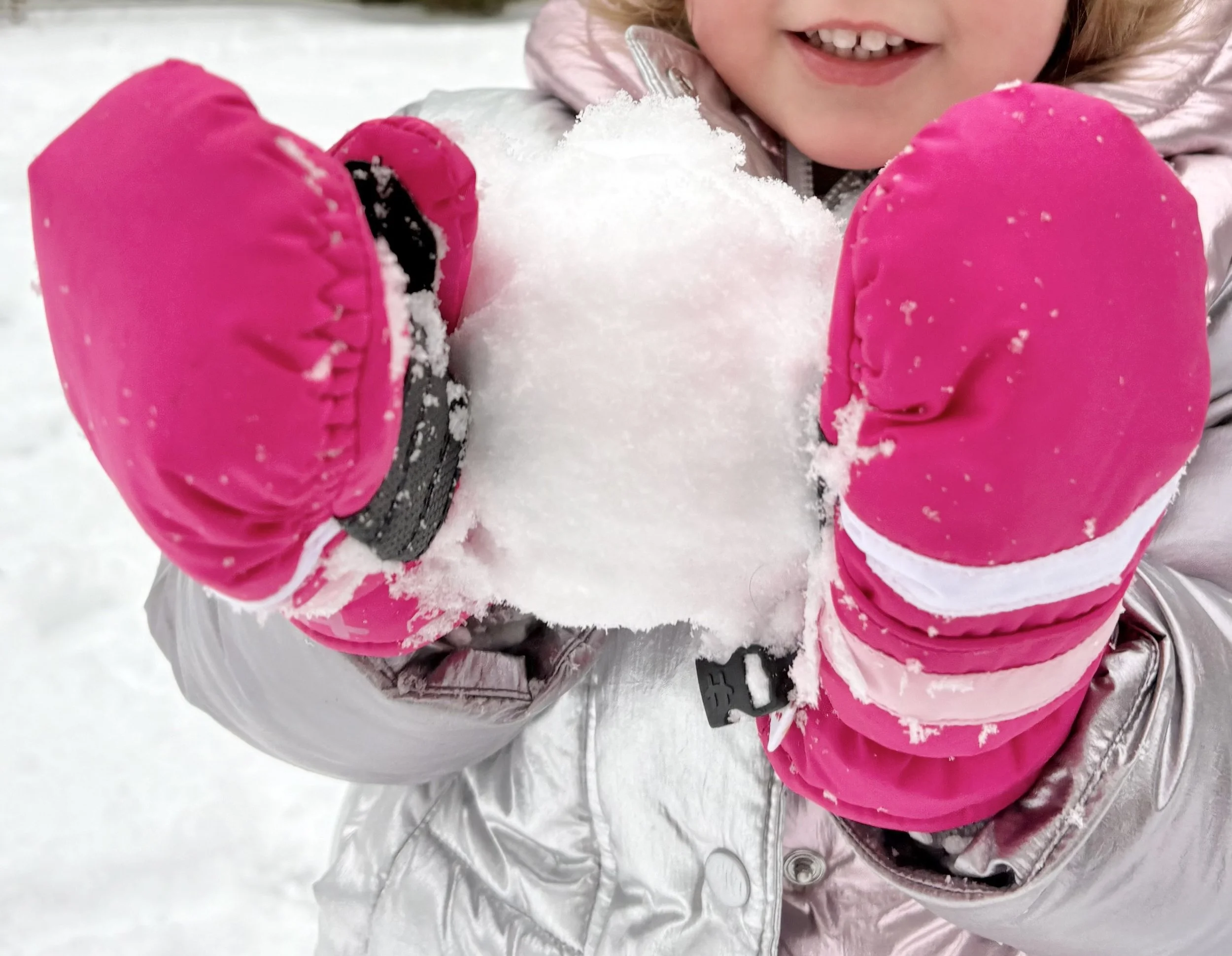 Sensory play doesn’t stop just because it’s cold out, it just moves outdoors. You can bring out some water-proof bins or plastic laundry baskets to create-your-own winterized sensory bins, or just step back, give some direction and let them play. Some ideas you can try: